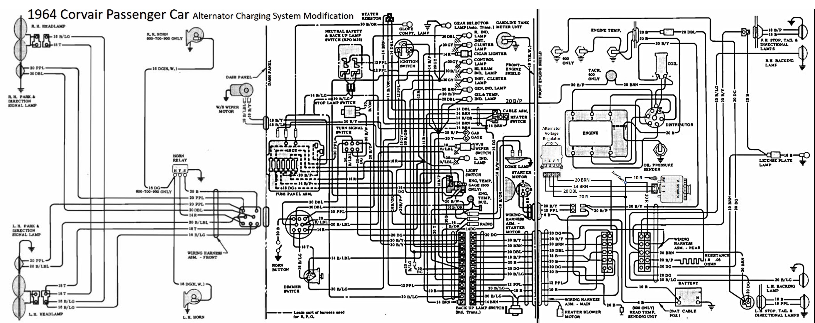 1964 Corvair Passenger Car Schematic with Alternator Mod